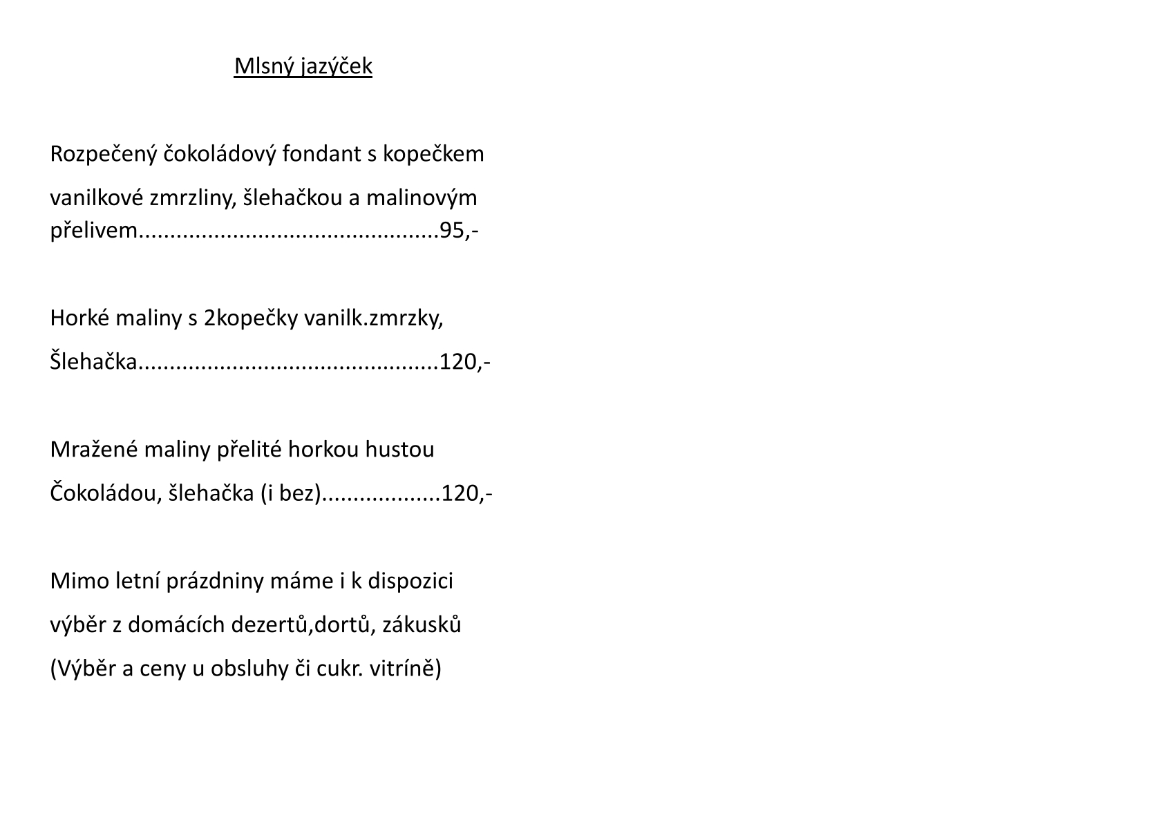 Zapůjčíme venkovní pomůcky (míče, šipky věci na pink ponk) . Na spodní hřiště mohou děti pouze s doprovodem už kvůli ponechání vypůjčených hraček ladem na místě. Je možnost pronajmout si kavárnu s obsluhou na sobotní dny (bez obsluhy lze pronajmout jen salonek) a to za 500-1000kč (5/ 8 hodinovou akci). V tomto případě povolujeme hostům přivézt si vlastní dort nebo vlastní 2 tácy s jednohubkami. V týdnu mimo pondělků a letních prázdnin je otevřeno od 15.00 hod.